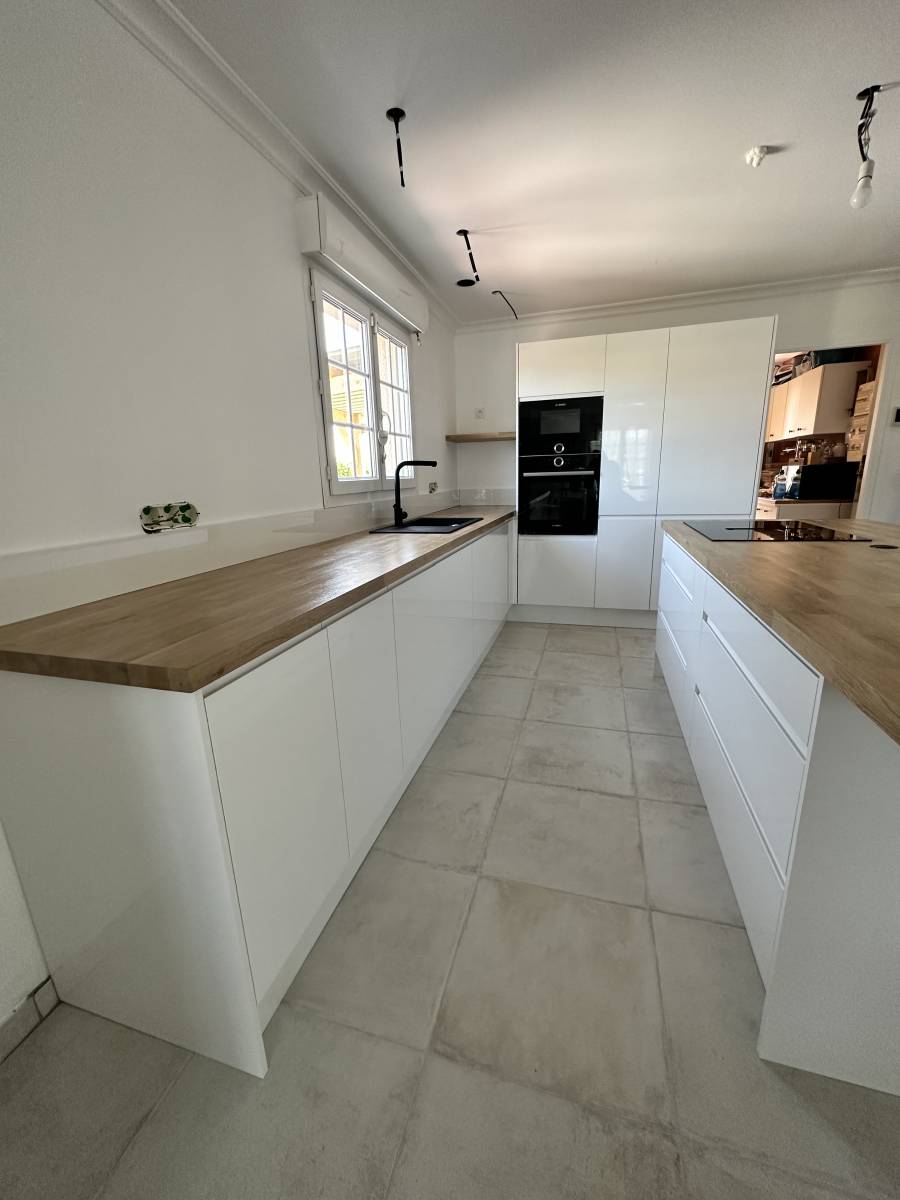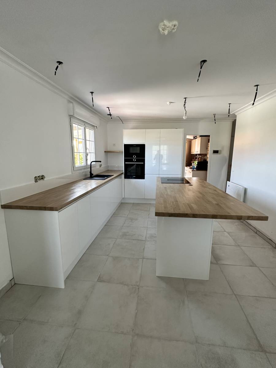 Nous sommes spécialiste de la cuisine, que ce soit pour les travaux préparatoires avant installation de cuisine : raccordement de tuyauteries, ouvertures, déplacement de tuyaux, etc ... Puis pour la pose avec installation des équipements et du mobilier de cuisine.
